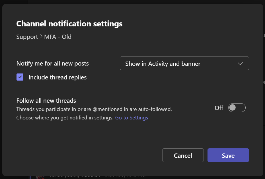 Teams and channels → choose “All activity” to get alerts for all channel activity.