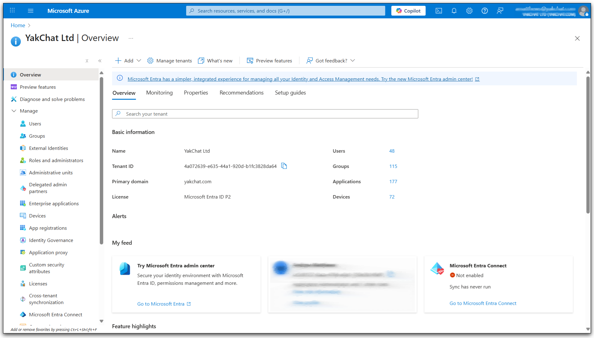 2. From the overview make a note of the Tenant ID, this will be used later.